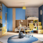 Spazio alla fantasia e al divertimento con questa cameretta dotata di un soppalco angolare dalle tonalità fresche e vivaci. Il soppalco, in Rovere Nodato, Giallo e Avio, non solo aggiunge un tocco di colore e allegria, ma ottimizza anche lo spazio, offrendo una soluzione pratica per dormire e giocare. Completa l’area un’ampia scrivania, ideale per studio e attività creative, che si inserisce perfettamente sotto il soppalco.