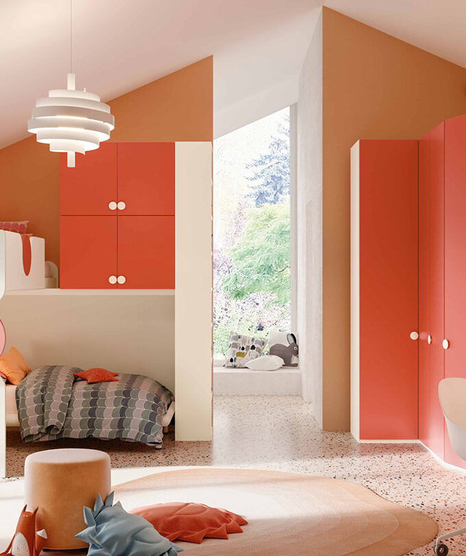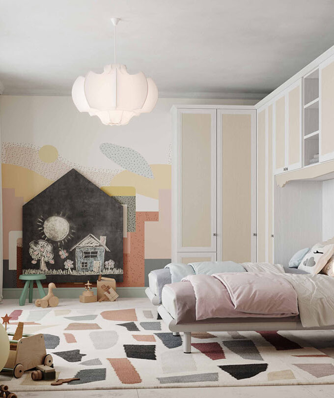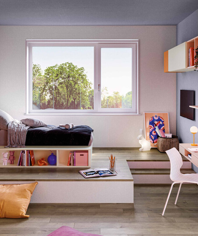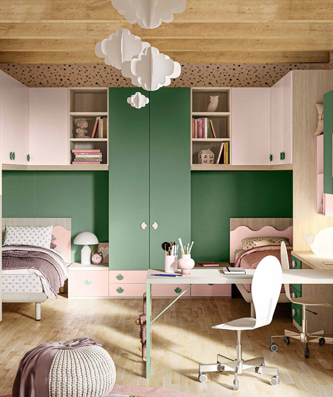 Questa cameretta è progettata per chi non vuole rinunciare alla comodità nella quotidianità, offrendo una soluzione pratica e stilosa con ponte angolare e letti sovrapposti. Le finiture disponibili in Nuvola Frassino, Tele e Cielo aggiungono un tocco di eleganza e freschezza. Il ponte angolare massimizza lo spazio, mentre i letti sovrapposti garantiscono una comoda sistemazione per due. Completa il tutto una scrivania versatile, ideale per lo studio e le attività creative.