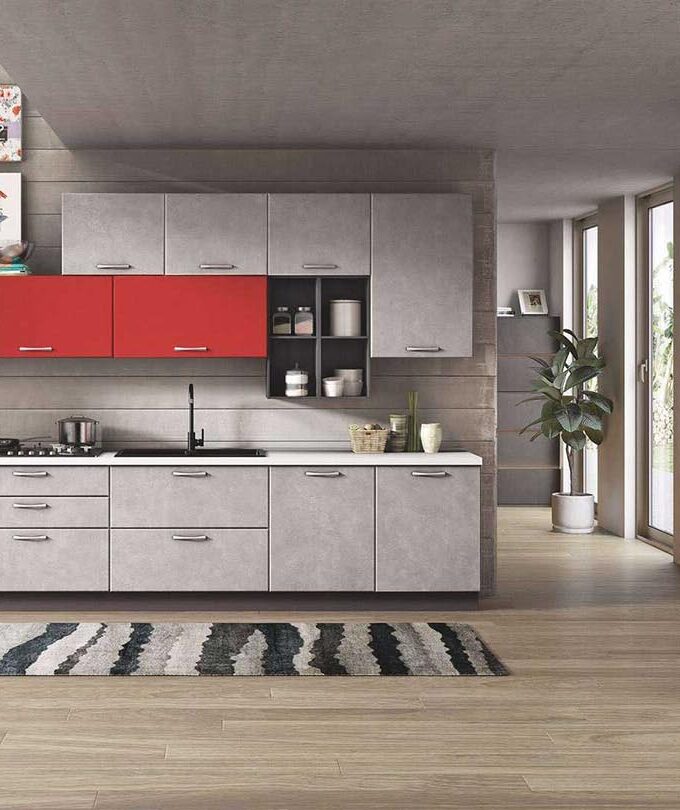La cucina ora è disponibile anche in PET, materiale riciclabile al 100%, privo totalmente di sostanze tossiche. Igienico e resistente ai graffi, si caratterizza anche per la superficie brillante e priva di aloni. Puoi scegliere GAIA nelle versioni con anta liscia o a telaio, con maniglia o con gola.